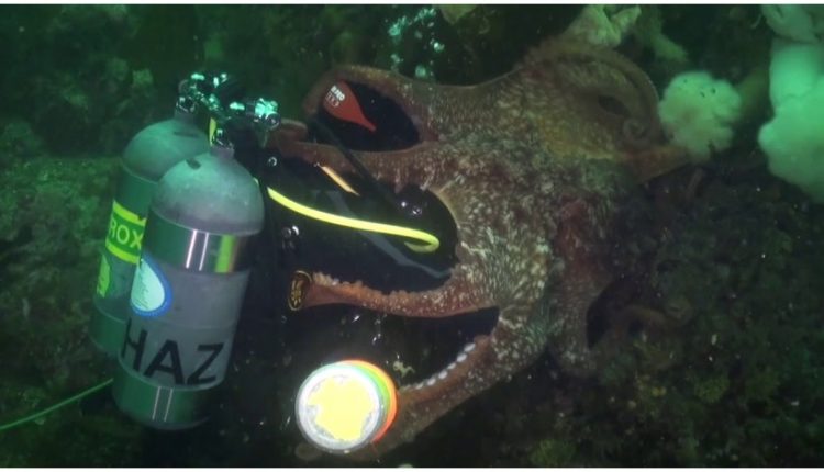 Γιγάντιο χταπόδι του Ειρηνικού Ωκεανό παραλίγο να καταπιεί ολόκληρο έναν δύτη που το πλησίασε. Κατά τη διάρκεια κατάδυσης στη νήσο Βανκούβερ στον Ειρηνικό Ωκεανό, τρεις δύτες παρατήρησαν το γιγαντιαίο χταπόδι να κρύβεται ανάμεσα στους βράχους. Ο ένας από τους επαγγελματίες δύτες, πλησίασε στο τεράστιο χταπόδι και εκείνο άπλωσε αμέσως τα πλοκάμια του για να καταλάβει ποιος είναι κοντά. Σιγά σιγά το χταπόδι τράβηξε τον δύτη προς το μέρος του, μέχρι που άρπαξε το κεφάλι του και άρχισε να καλύπτει το πάνω μέρος του σώματός του. Αυτή την τακτική ακολουθεί με όλα τα θηράματά του. Με τη βοήθεια του συνεργάτη του, ο δύτης κατάφερε να βγει από το στόμα του, χωρίς να το τραυματίσει ούτε φυσικά να τραυματιστεί ο ίδιος.
