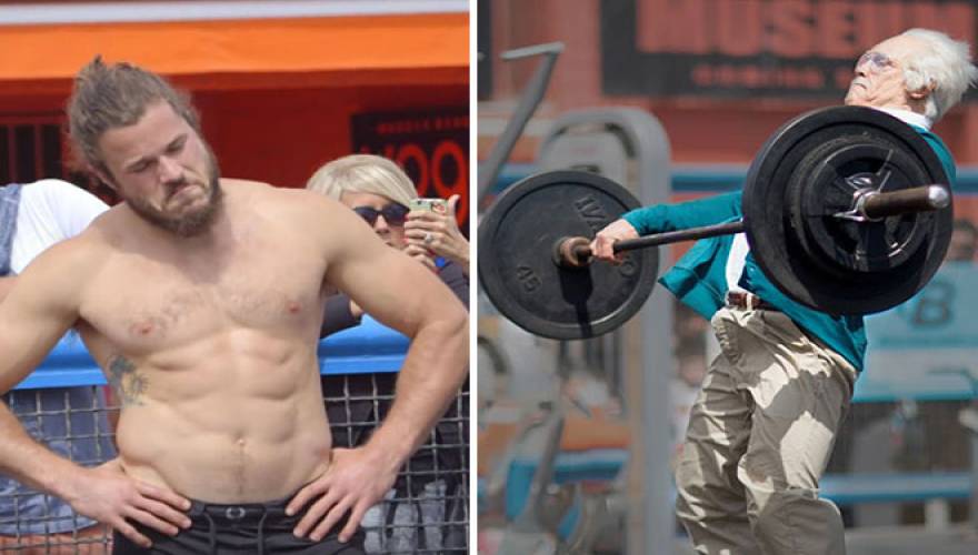 Ο επαγγελματίας αρσιβαρίστας Kenneth Leverich τρέλανε τους ανθρώπους που γυμνάζονταν σε ένα υπαίθριο παραλιακό γυμναστήριο με έναν απίθανο τρόπο.