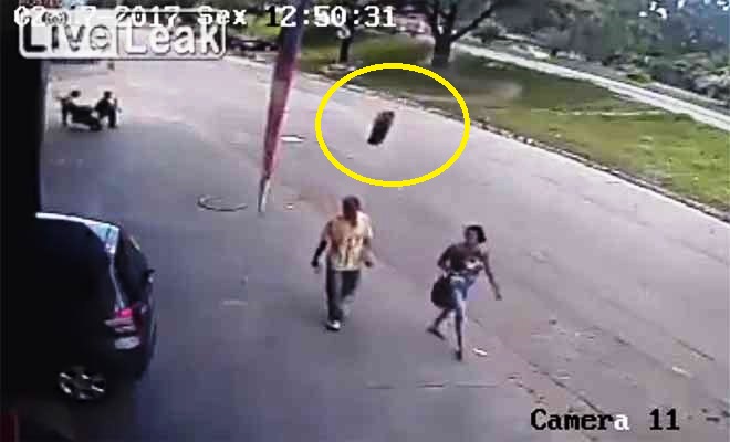 Ο 50χρονος Roberto Carlos Fernandes περπατούσε κανονικά στο πεζοδρόμιο με τη γυναίκα του, όταν ένα ελαστικό ήρθε από το πουθενά και τον χτύπησε στο κεφάλι ρίχνοντας τον αναίσθητο στο έδαφος. Τυχερός μέσα στην ατυχία του, ο άνδρας γλίτωσε τα χειρότερα με κατάγματα στο στήθος και στο κρανίο. Δείτε το απίστευτο περιστατικό που κατέγραψε κάμερα ασφαλείας στην πόλη Ipatinga της Βραζιλίας: