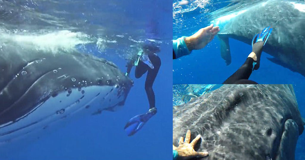 Τεράστια φάλαινα προστατεύει δύτη από καρχαρία κάτω από το πτερύγιο της