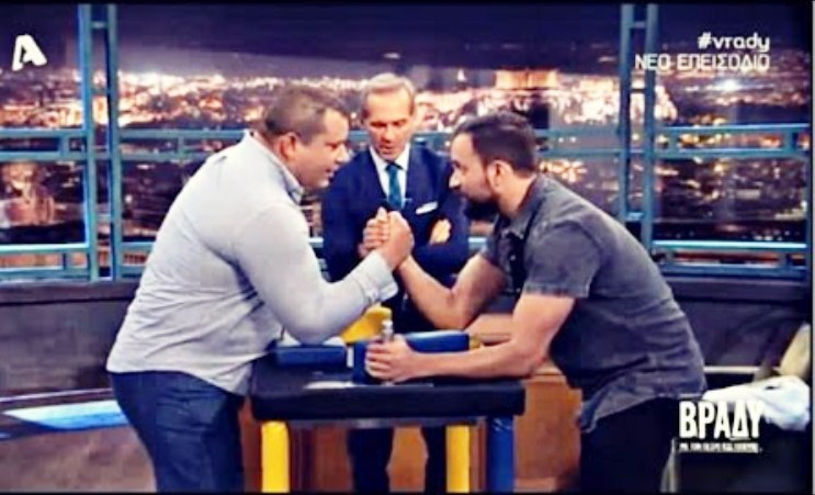 Ο Πέτρος Κωστόπουλος κάνει ξανά την διαφορά στην ελληνική τηλεόραση στην βραδινή εκπομπή «ΒΡΑΔΥ» στον ALPHA TV την τετάρτη 15/06/2016, μετά τις καταπληκτικές μιμήσεις του Γιώργου Λιανού, ο Γιώργος Χαραλαμπόπουλος facebook.com/giorgos.charalampopoulos (παγκόσμιος, πανευρωπαικός, πανελλήνιος πρωταθλητής) μπαίνει στο πλατό και δοκιμάζει ταυτόχρονα την δύναμη του παρουσιαστή της εκπομπής Πέτρου Κωστόπουλου αλλά και του καλεσμένου του Γιώργου Λιανού, σε έναν αγώνα χειροπάλης!!! Τί ακολούθησε? Δείτε στο απόσπασμα!!