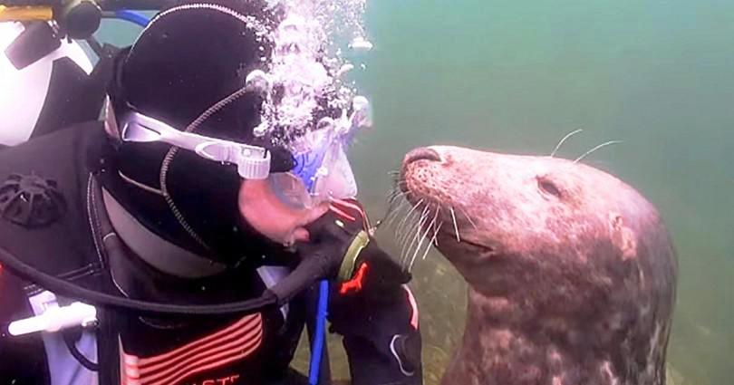 Οι φώκιες συνήθως αναφέρονται ως «σκυλιά του νερού» και αυτό το συναρπαστικό βίντεο καθιστά σαφές το γιατί. Όχι μόνο είναι περίεργες (όπως ο καλύτερος φίλος του ανθρώπου), αλλά επίσης αγαπούν την αγκαλιά με τους ανθρώπους. Ενώ αρκετοί δύτες εξερευνούσαν την θάλασσα κοντά στις νήσους Scilly στο Ηνωμένο Βασίλειο, μια ομάδα από φώκιες έπεσαν στο νερό για εξερεύνηση. Οι πιο πολλές δεν έδειχναν ενδιαφέρον στους ανθρώπους, αλλά μια φώκια ήταν ιδιαίτερα επίμονη σε έναν συγκεκριμένο δύτη που ονομάζεται Gary! Αντί να κολυμπήσει μαζί με τους φίλους της, η φώκια κόλλησε με το νέο της φίλο και τράβηξε το χέρι του.