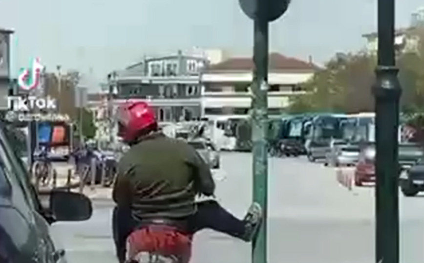 Χιλιάδες είναι τα likes που έχει συγκεντρώσει ένα βίντεο στο Τik Tok, με έναν ντελιβερά σε δρόμο της Λάρισας, ο οποίος ξεκουράζει το πόδι του ακουμπώντας στην κολόνα του φαναριού.