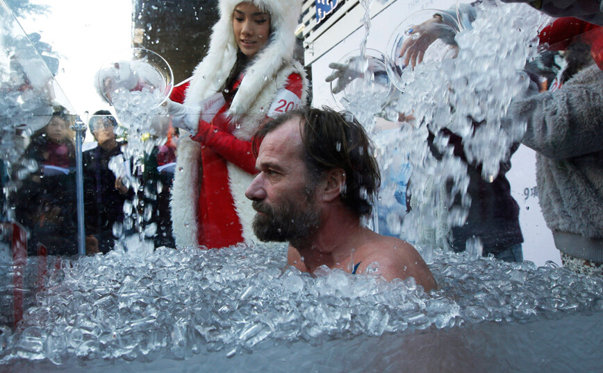 Αλλά ο Χοφ είναι κάπως σπάνιος άνθρωπος. Ο Ολλανδός αθλητής υποστηρίζει ότι βυθίζοντας τον εαυτό του στον πάγο και το υπερβολικό κρύο βοηθάει με αυτόν τον τρόπο στην επίτευξη της βέλτιστης υγείας -τόσο που τον αποκαλούν «Ο Άνθρωπος των πάγων». Ο Χοφ έχει 21 Παγκόσμια Ρεκόρ Γκίνες για διάφορα φαινομενικά υπεράνθρωπα κατορθώματα, όπως κολύμπι κάτω από τον πάγο για 66 μέτρα, φορώντας μόνο σορτς, καθώς και για τη συμμετοχή του στον ημιμαραθώνιο στον Αρκτικό Κύκλο και εκείνη στον μαραθώνιο στην έρημο του Ναμίμπ χωρίς να πιει καθόλου υγρά, αναφέρει το grunge.com.